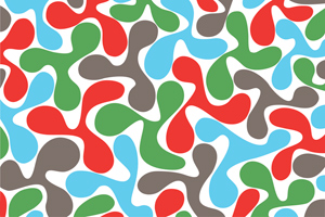 Het blauw symboliseerd de hemel en de oceanen, het warmgrijs symboliseerd de vaste grond, groen en rood symboliseren respectievelijk de planten- en dierenwereld. Het geheel is soepel vloeiend met elkaar verbonden. Alles vind zijn eigen weg. Vrij zwevend in de ruimte. Een onderliggend streng systeem houdt het in balans. Het is de Jurk van Moeder Aarde. Afgewerkt met hijsogen. 118 x 180 cm.